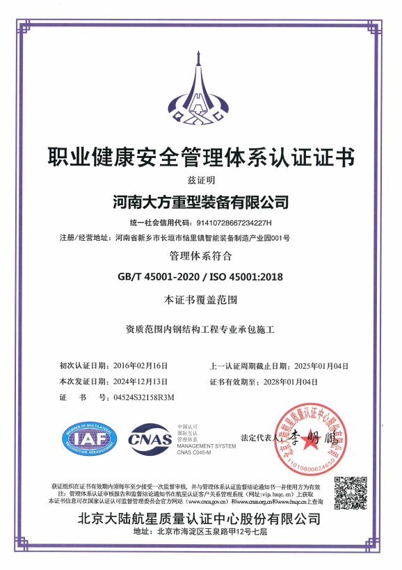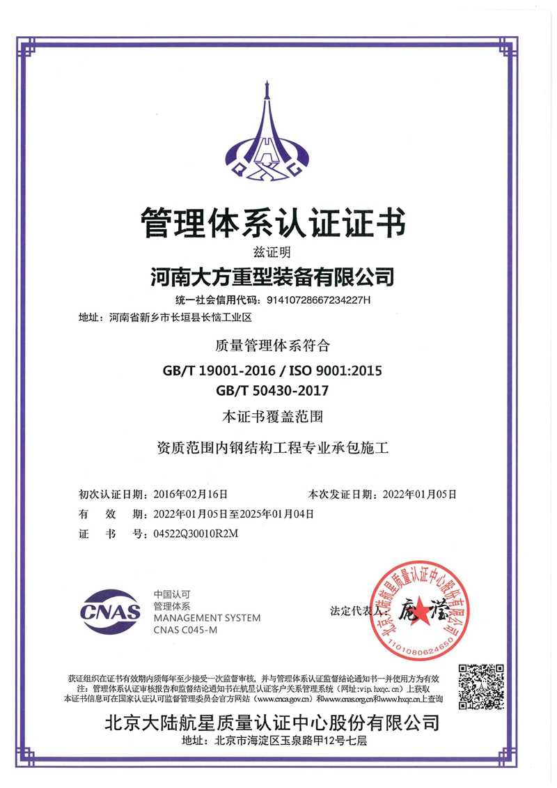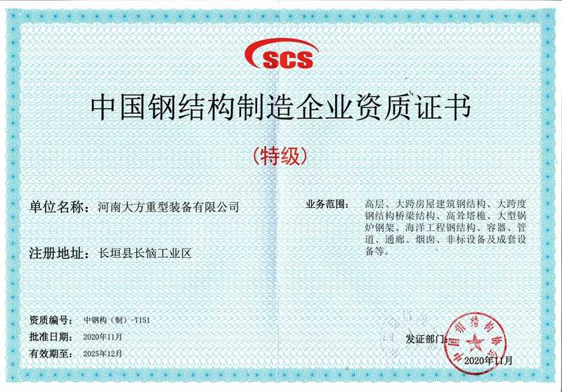Qualification Certificate of Steel Structure Manufacturing Enterprise -- Special Grade for Reassembly