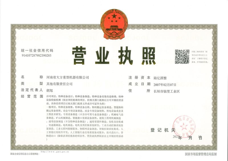 Dafang Heavy Machine-Business License