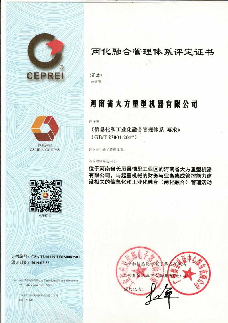 Certificate of Integrated Management System of Informatization and Industrialization