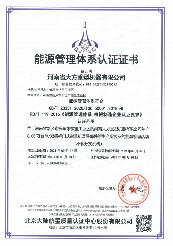 Certificate of Energy Management System