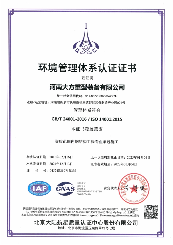 Certificate of Environmental Management system