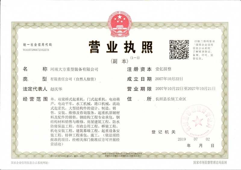Dafang Heavy Equipment-Business Licens